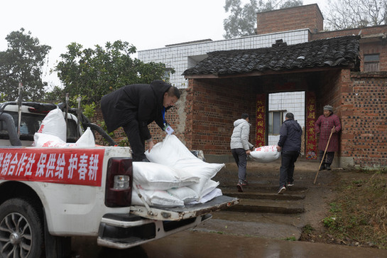 四川省瀘縣供銷合作社農(nóng)資服務(wù)員把化肥和種子送到村民家中。資料照片