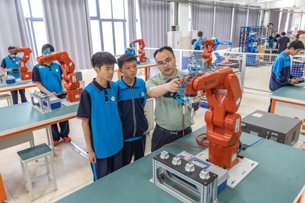 5月17日,在重慶永川職教中心,老師在實(shí)訓(xùn)室指導(dǎo)學(xué)生。