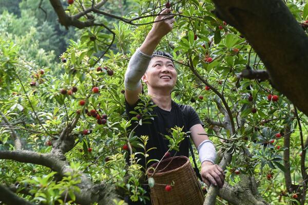 六月十二日,在慈溪市橫河鎮(zhèn)梅園村的楊梅園中,種植戶采摘成熟的楊梅。近期,“中國楊梅之鄉(xiāng)”浙江省慈溪市的露天楊梅進(jìn)入成熟期,陸續(xù)采摘上市。