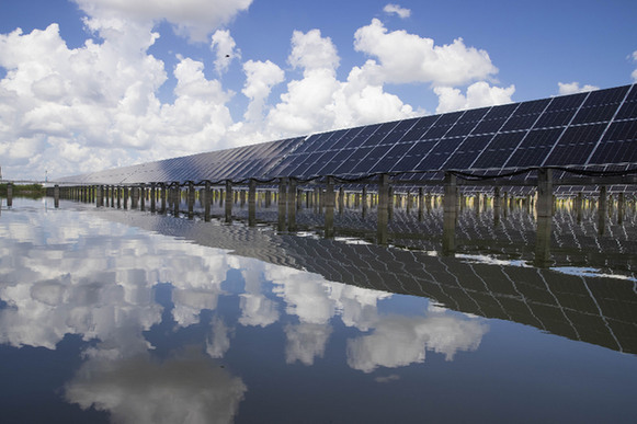 大慶油田星火水面光伏示范工程現(xiàn)場。新華社記者張濤攝