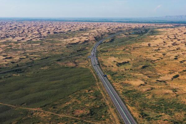 夏日時(shí)節(jié),內(nèi)蒙古自治區(qū)杭錦旗境內(nèi)的穿沙公路綠意盎然,綠色沿著道路前行,并向兩旁的沙地鋪展,猶如一條條“綠色動(dòng)脈”在庫(kù)布其沙漠中綿延。穿沙公路不僅給昔日被沙漠阻隔而出行無(wú)路的農(nóng)牧民帶來(lái)便利,也為實(shí)施國(guó)家防沙治沙重點(diǎn)工程、企業(yè)產(chǎn)業(yè)化投資治理庫(kù)布其沙漠打下了堅(jiān)實(shí)的基礎(chǔ)。