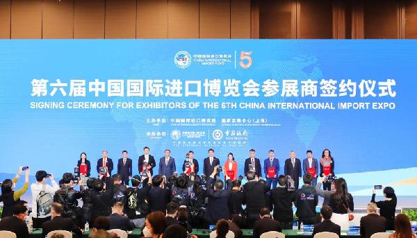 2022年11月6日,2022年中國(guó)國(guó)際進(jìn)口博覽會(huì)參展商聯(lián)盟大會(huì)在上海舉行。這是在大會(huì)期間進(jìn)行的第六屆進(jìn)博會(huì)參展商簽約儀式。新華社記者 方喆 攝