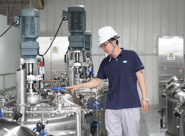 “和傳統(tǒng)的化工生產線相比,我們的生產線顯得過于簡潔,這恰恰是優(yōu)勢?!蔽嫻S董事長徐絢明指著背后的生產線向記者介紹,因為不用傳統(tǒng)化工產業(yè)的嚴格無菌、高壓環(huán)境,對水和能源的消耗也降低50%以上。