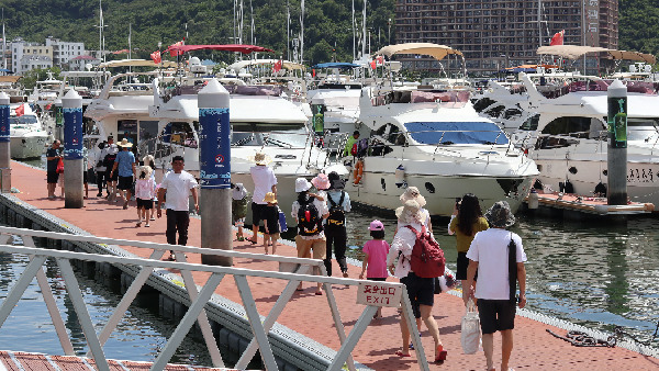 8月23日,在三亞游艇旅游中心,不少游客準備登上游艇出海游玩。