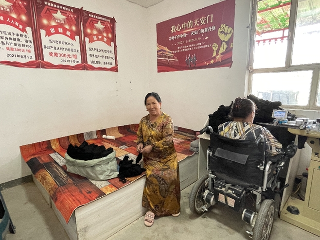 朱力姑·阿布拉不時叮囑姐妹們注意各項生產(chǎn)安全事項。當(dāng)有姐妹們因家中急事出現(xiàn)空缺時,她及時進(jìn)行補位,保障生產(chǎn)順利進(jìn)行。