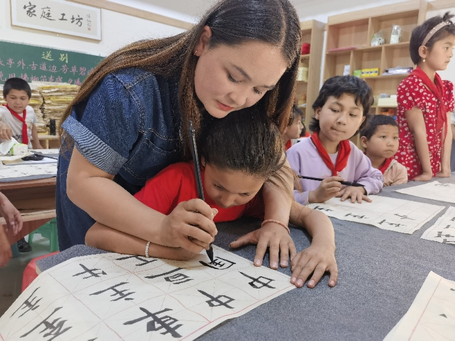 唐錦書院院長紀(jì)文彬介紹,利用寒暑假及周末唐錦書院針對職工孩子免費開展一系列傳播中華優(yōu)秀傳統(tǒng)文化的活動,如書法、手工剪紙等,為“文化潤疆”、鑄牢中華民族共同體意識貢獻(xiàn)自己的力量。