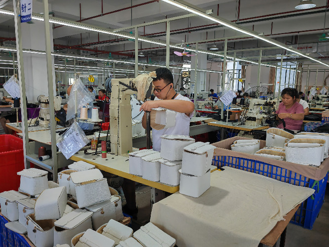 如今,玉林不少企業(yè)還緊抓RCEP生效實施和“一帶一路”建設(shè)機(jī)遇,拓展開放發(fā)展渠道,積極融入國內(nèi)國際雙循環(huán)。廣西瑞喆箱包有限公司是北流一家專為國外高端化妝品牌配套生產(chǎn)箱包的企業(yè),產(chǎn)品主要銷往歐美市場?!白罱畮滋欤蛻粝聠渭s350萬個箱包,目前訂單排到了明年1月份。今年前5個月營業(yè)額大約7000萬元,預(yù)計下半年營業(yè)額將翻一番?!惫矩?fù)責(zé)人陳勇立說,目前,在做的化妝包就有480萬個,保守估計需生產(chǎn)的產(chǎn)品約有600萬個,預(yù)計今年營業(yè)額約1.5億元。