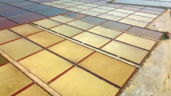 初秋時(shí)節(jié),鹽田色彩繽紛,美若多彩的調(diào)色板。