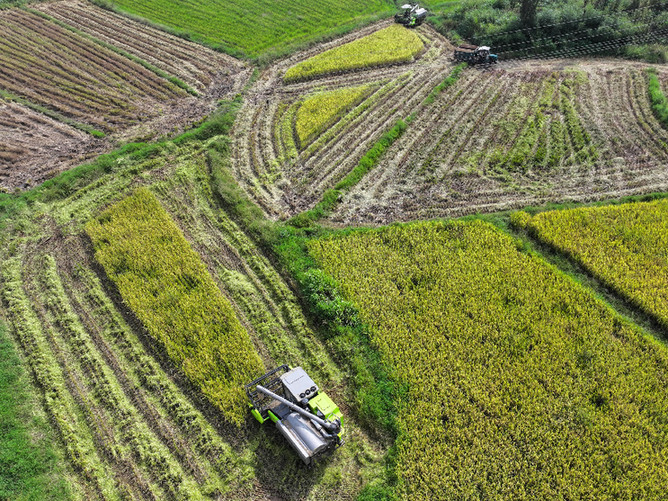 金秋時(shí)節(jié),瀏陽(yáng)市沿溪鎮(zhèn)種植的中稻迎來(lái)收獲季,當(dāng)?shù)剞r(nóng)民搶抓農(nóng)時(shí)收割水稻,稻田里一派繁忙景象。