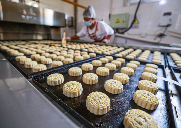 中秋節(jié)臨近,各地月餅加工企業(yè)忙著生產(chǎn)月餅,供應(yīng)節(jié)日市場。新華社發(fā)(李信君 攝)