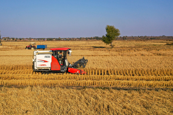 10月14日,農機手在通遼市科爾沁左翼后旗金寶屯鎮(zhèn)套布海村駕駛收割機收割水稻(無人機照片)。目前,內蒙古自治區(qū)通遼市2030萬畝糧食作物正值收獲季,田間一片豐收景象。內蒙古通遼市地處“玉米黃金種植帶”,今年玉米種植面積達1800多萬畝。由于淺埋滴灌、高密度栽培、全程機械化等生產技術的運用,通遼市玉米畝產穩(wěn)中有升。在通遼市科爾沁左翼后旗,水稻也收獲過半。今年夏季,科爾沁左翼后旗多個鄉(xiāng)鎮(zhèn)遭遇洪澇災害,但得益于提前疏通排干渠,當地水稻產量穩(wěn)中有升。