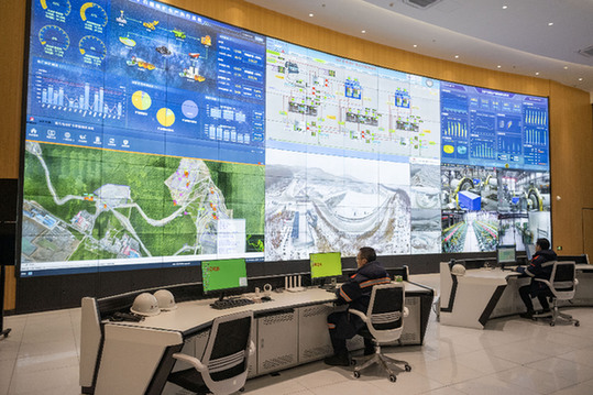 在位于鶴崗市蘿北縣的中國五礦集團(黑龍江)石墨產業(yè)有限公司,工作人員在智慧管控中心內作業(yè)。 記者 謝劍飛 攝