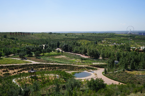 在實施土地整理和復(fù)墾綠化之前,黑岱溝露天礦北排土場上裸露著大片沙土,刮風(fēng)時塵土飛揚。如今,這里被改造成疊翠林區(qū),蔥蘢的草木,碧波蕩漾人工湖,嬉戲的水鳥,精心設(shè)計的小橋流水、涼亭、棧道,美不勝收。