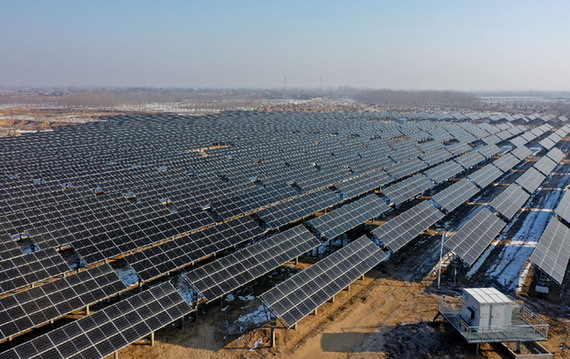 河北秦皇島昌黎縣荒佃莊鎮(zhèn)附近的一處光伏發(fā)電場(無人機(jī)照片)。新華社記者 楊世堯 攝