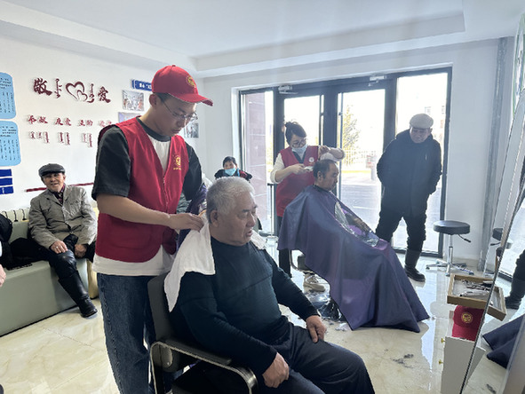志愿者們正在為老年人理發(fā)。新華社記者 王雪冰 攝