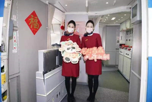 “今天是中國(guó)傳統(tǒng)的除夕夜,非常高興能和大家相聚在本次國(guó)航春節(jié)主題航班上,在萬米高空共度這個(gè)團(tuán)圓中國(guó)年!”2月9日,國(guó)航CA931航班的機(jī)長(zhǎng)廣播里傳來了新春祝福。當(dāng)天,這架“龍行龘龘 鳳舞翩翩”主題航班從北京飛往法蘭克福,這也是中國(guó)農(nóng)歷新年被列為聯(lián)合國(guó)假日后,國(guó)航首次在國(guó)際航班舉辦的春節(jié)主題航班。