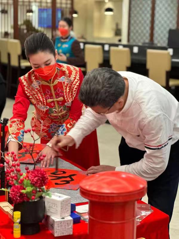 在登機(jī)口,國(guó)航為每位旅客貼心地送上一份定制版春節(jié)禮盒,內(nèi)含春聯(lián)、窗花和福字。伴著輕松喜慶的春節(jié)主題音樂走進(jìn)客艙,吉祥如意的主題海報(bào)映入旅客視線,全面煥新的國(guó)航“鳳舞云端”客艙內(nèi)飾充滿濃郁的中國(guó)風(fēng)。