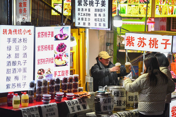 位于長沙市天心區(qū)裕南街街道的東瓜山夜市是長沙美食地標之一,也是當(dāng)?shù)叵M經(jīng)濟和個體工商戶發(fā)展的“風(fēng)向標”。一兩百米長的街巷里,有30多家經(jīng)營奶茶、燒烤、肉腸、紫蘇桃子姜等美食的小店。