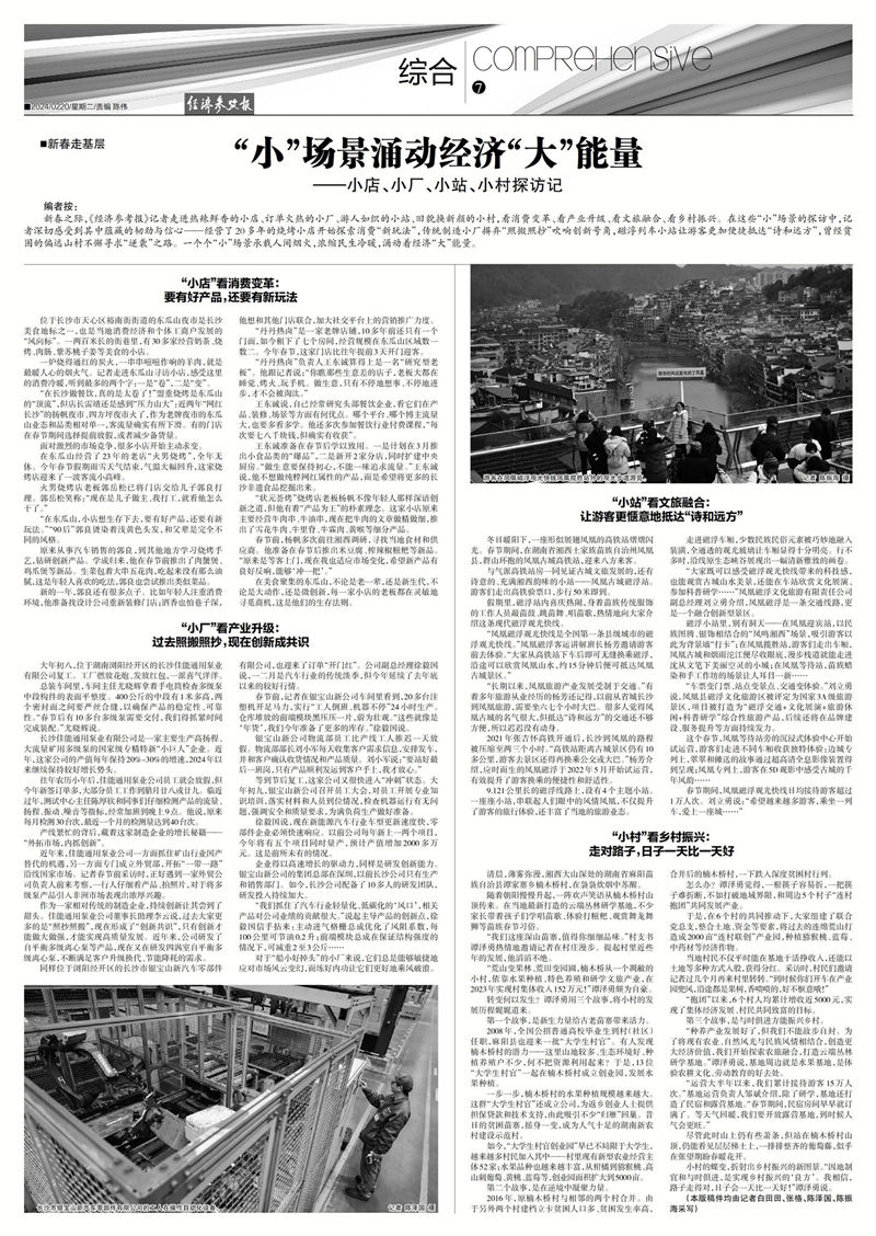 新春之際,《經(jīng)濟參考報》記者走進熱辣鮮香的小店、訂單火熱的小廠、游人如織的小站、舊貌換新顏的小村,看消費變革、看產(chǎn)業(yè)升級、看文旅融合、看鄉(xiāng)村振興。在這些“小”場景的探訪中,記者深切感受到其中蘊藏的韌勁與信心——經(jīng)營了20多年的燒烤小店開始探索消費“新玩法”,傳統(tǒng)制造小廠摒棄“照搬照抄”吹響創(chuàng)新號角,磁浮列車小站讓游客更加便捷抵達“詩和遠方”,曾經(jīng)貧困的偏遠山村不懈尋求“逆襲”之路。一個個“小”場景承載人間煙火,濃縮民生冷暖,涌動著經(jīng)濟“大”能量。