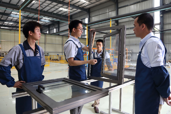 在位于廣東清遠(yuǎn)的貝克洛幕墻門窗系統(tǒng)有限公司工廠內(nèi),工人正在對門窗質(zhì)量進(jìn)行檢測?!∈茉L者供圖