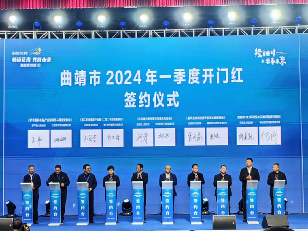 曲靖市2024年一季度“開門紅”簽約儀式現(xiàn)場(2024年2月24日攝)。