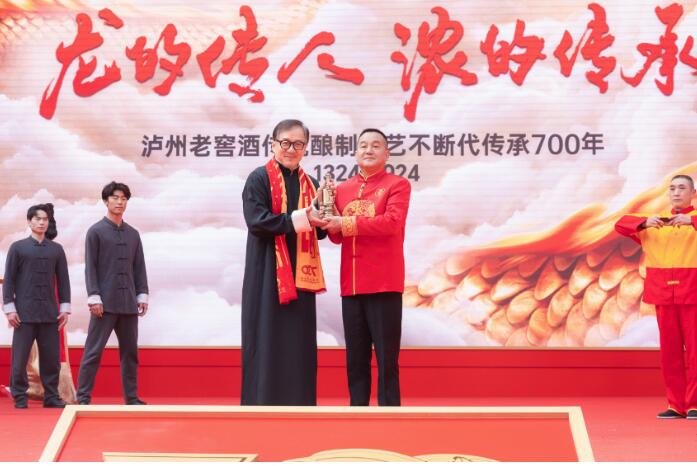 劉淼為成龍頒發(fā)瀘州老窖?國(guó)窖1573文化傳播大使紀(jì)念杯