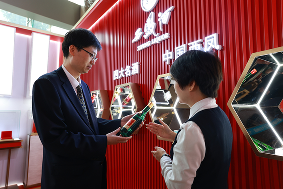 圖為陜西西鳳酒廠集團(tuán)有限公司黨委書(shū)記、董事長(zhǎng)張正在西鳳酒展廳參觀