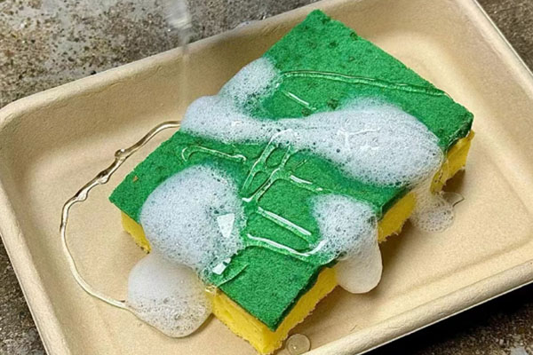淋上“洗潔精”,“百潔布”在餐盤上抹上一圈后,被店員放入口中食用……這樣的獵奇視頻在短視頻平臺上大量傳播。不少人紛紛感慨評論道:“起猛了,百潔布也能吃?”其實(shí),視頻里的“百潔布”是一款造型獨(dú)特的蛋糕食品,并配以糖漿做的“洗潔精”、奶泡做的“泡沫”,以達(dá)到獨(dú)特的視覺效果。