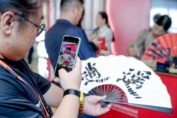 在五糧液精心布置的書(shū)法創(chuàng)作區(qū),青年書(shū)法家揮毫潑墨,邀請(qǐng)全球嘉賓在折扇上寫(xiě)下“心中的和美”,“萬(wàn)事勝意”“健康喜樂(lè)”“幸福平安”“逍遙”等寄語(yǔ)傳遞著對(duì)世界和家人的和美祝福。一位現(xiàn)場(chǎng)嘉賓表示:“和美是飽含美好寓意的詞語(yǔ),這次活動(dòng)將書(shū)法、折扇與‘和美’結(jié)合,向世界宣揚(yáng)了中華文化,非常有意義?!?/p>