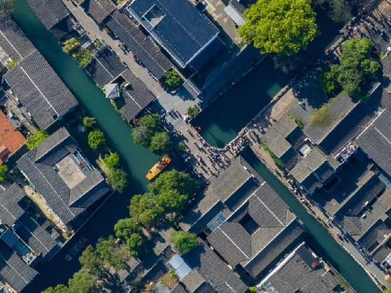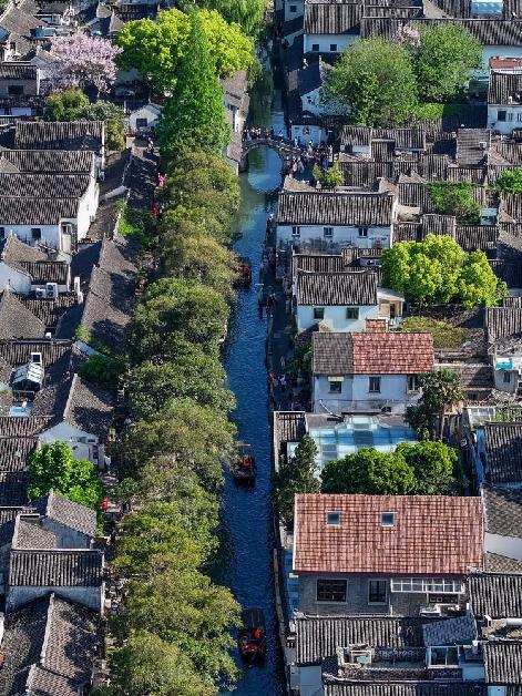 這是4月18日拍攝的蘇州平江歷史文化街區(qū)(無人機照片)。新華社記者李博 攝