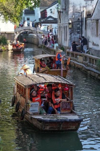 粉墻黛瓦石板路,小橋流水傍人家。在平江歷史文化街區(qū),搖一把蘇扇,聽一曲評彈;或泛舟河上,或漫步街巷。何處品江南?此處“最江南”。