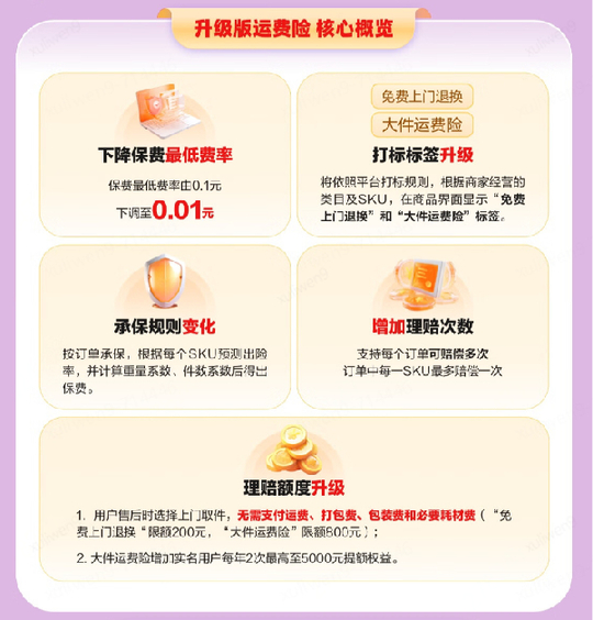 本次升級,再次擴大了支持“免費上門退換”的第三方商家的范圍,同時為了進一步幫助商家實現(xiàn)降本增效,針對經(jīng)營極小件的商家和訂單支持保費折扣,賦能平臺賣家無憂運營,迎接即將到來的京東618。
