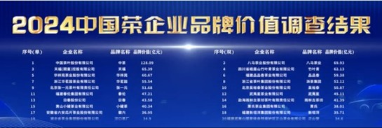 5月10日,“2024中國茶品牌建設論壇”在上海舉辦,中國茶葉流通協(xié)會、中國經(jīng)濟信息社發(fā)布了中國茶品牌價值調(diào)查結果,中茶公司以128.09億再獲“2024中國茶品牌Top50”榜首,成為唯一品牌價值過百億企業(yè)。