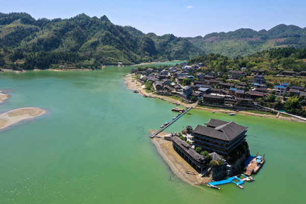 圖為重慶市酉陽(yáng)縣酉水河鎮(zhèn)河灣村景色(無(wú)人機(jī)照片)。新華社記者 唐奕 攝