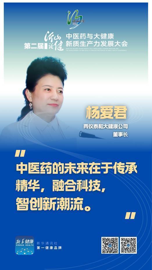 日前,第二屆“沂山論健·中醫(yī)藥與大健康新質生產力發(fā)展大會”在山東省濰坊市臨朐縣舉行。大會期間兩儀泰和大健康產業(yè)有限公司董事長楊愛君接受新華社“新華健康”記者專訪時,分享了她做為傳統(tǒng)企業(yè)負責人對探索創(chuàng)新型生物醫(yī)藥企業(yè)新賽道的思考,并展望了中醫(yī)藥與現(xiàn)代科技融合的未來。