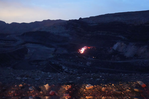 近日,記者來到位于賀蘭山腹地的汝箕溝礦區(qū)中槽、紅梁西火區(qū),站在數(shù)百米外,刺鼻的氣味撲面而來,大約數(shù)十平方米的區(qū)域內(nèi),紅色火焰在夜間清晰可見。第二天一早,記者在中槽火區(qū)附近看到,厚幾十米、長達(dá)幾千米的煤層自燃后呈灰白色,煤層燒空后還引發(fā)了山體滑坡。