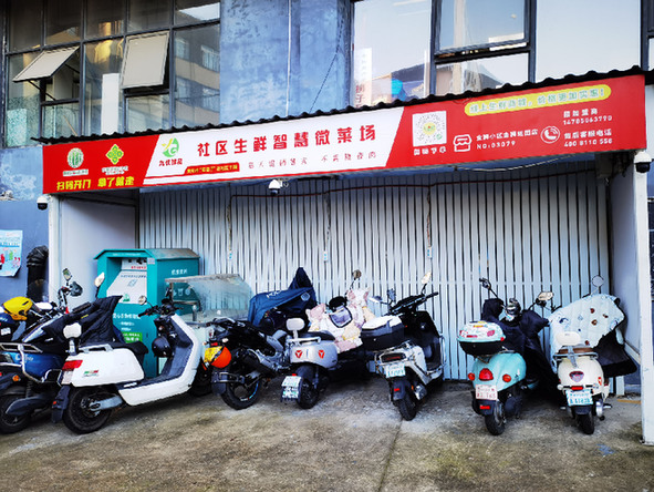 一小區(qū)的智慧微菜場(chǎng)變成了電瓶車的停放處。 記者 向定杰 攝