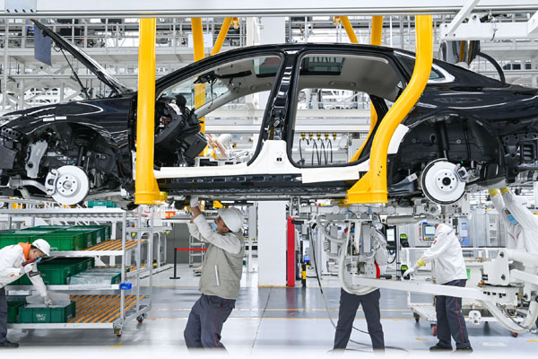 ——搶抓機遇,助力“汽車城”駛入新能源汽車產業(yè)快車道。東風大街上,“第一汽車制造廠奠基紀念”漢白玉基石巍然矗立,廠區(qū)的紅墻保留著建廠時的風貌。而走入一汽紅旗繁榮工廠的廠門,取代“懷舊風”的,是一派現(xiàn)代化圖景:車間寬敞明亮,無人小車穿梭其間,靈活避障,自動機械臂手舞足蹈,緊張忙碌,工人操作聚精會神,有條不紊。