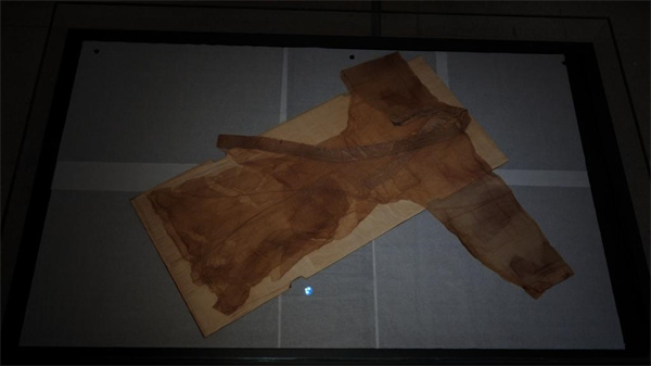 ??“素紗單衣有兩件,一件是直裾,一件是曲裾,都是右衽。其中,直裾的是49克,衣長(zhǎng)128厘米;曲裾的是48克,衣長(zhǎng)160厘米。曲裾的素紗單衣在工藝上相對(duì)更高超,因?yàn)樗L(zhǎng)、更寬,卻還輕1克。”許寧寧說(shuō),“直裾素紗單衣在館內(nèi)馬王堆漢墓基本陳列中常年展出,此次展覽中,我們特意安排了這件從未對(duì)外展出過(guò)的曲裾素紗單衣真品。”