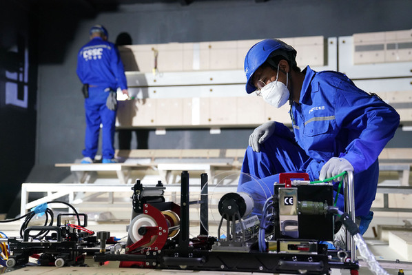 圖為近日在中國船舶大連造船公司LNG綜合培訓(xùn)中心內(nèi),學(xué)員在練習(xí)粘連作業(yè)?!⌒氯A社記者 樊雨晴 攝
