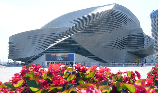 圖為6月25日拍攝的第十五屆夏季達(dá)沃斯論壇主會(huì)場(chǎng)大連國(guó)際會(huì)議中心外景?!⌒氯A社記者 章磊 攝