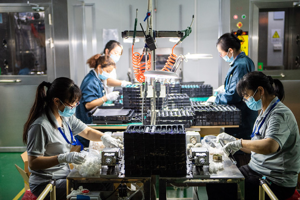 在湖南省婁底市新化經(jīng)濟(jì)開發(fā)區(qū)一家文印設(shè)備生產(chǎn)企業(yè),工人在生產(chǎn)打印機(jī)感光鼓。 記者 陳思汗 攝