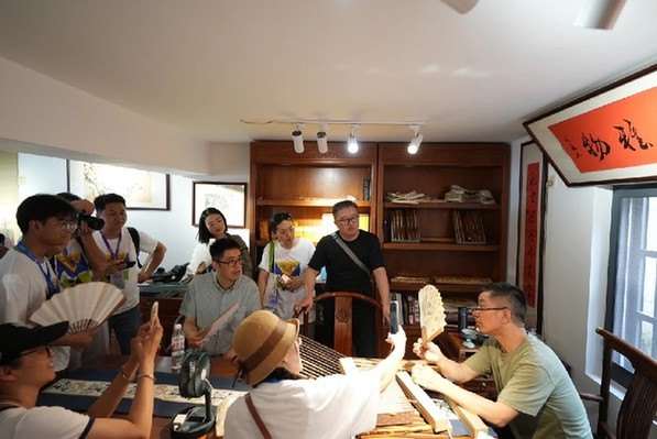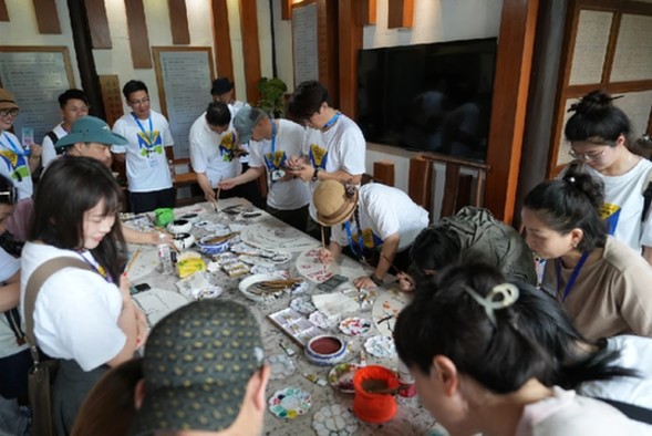 7月6日,來自北京電影學院、杭州師范大學等23所高校54名師生走進創(chuàng)業(yè)賽點村鄣吳村,領(lǐng)略吳昌碩大師的藝術(shù)人生?,F(xiàn)場還開展了賽事沙龍分享,與會人員針對賽題踴躍發(fā)言,從賽題思路、答題技巧到成果轉(zhuǎn)化都提出了自己的想法,豐富了賽事推廣。