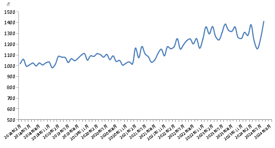 新華財(cái)經(jīng)北京7月10日電(陸子琛、馬兵)6月份,新華·中鹽食用鹽(商超)價(jià)格指數(shù)報(bào)1411.76點(diǎn),較上期(2024年5月)上漲158.16點(diǎn),漲幅12.62%;較基期(2018年1月)上漲411.76點(diǎn),漲幅41.18%;刷新指數(shù)運(yùn)行周期內(nèi)最高值;較周期內(nèi)最低點(diǎn)981.91點(diǎn)(2018年12月)上漲429.85點(diǎn),漲幅43.78%。
