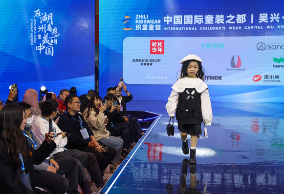 織里鎮(zhèn)某童裝類活動上,童模正在展示新款童裝。資料照片