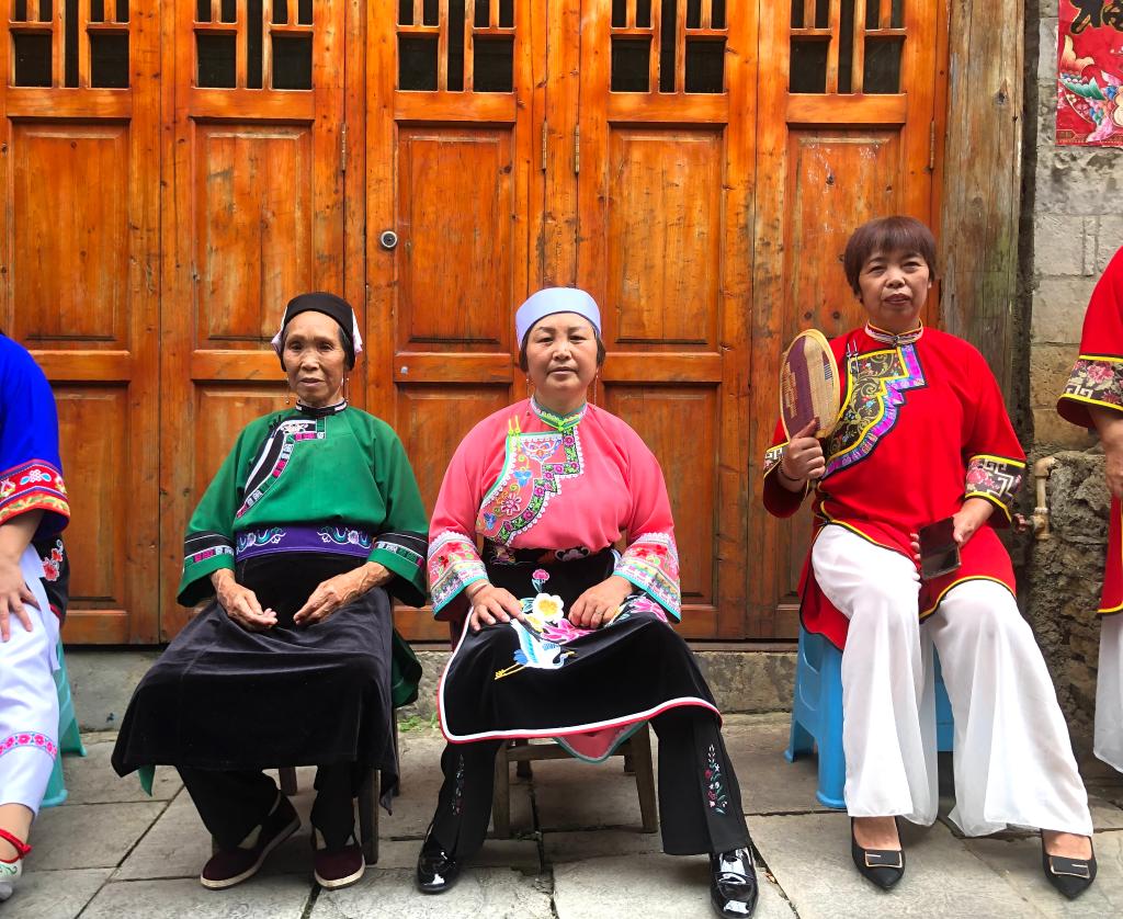 ??舊州古鎮(zhèn)婦女穿著傳統(tǒng)服飾鳳陽漢裝。新華社記者 李凡 攝