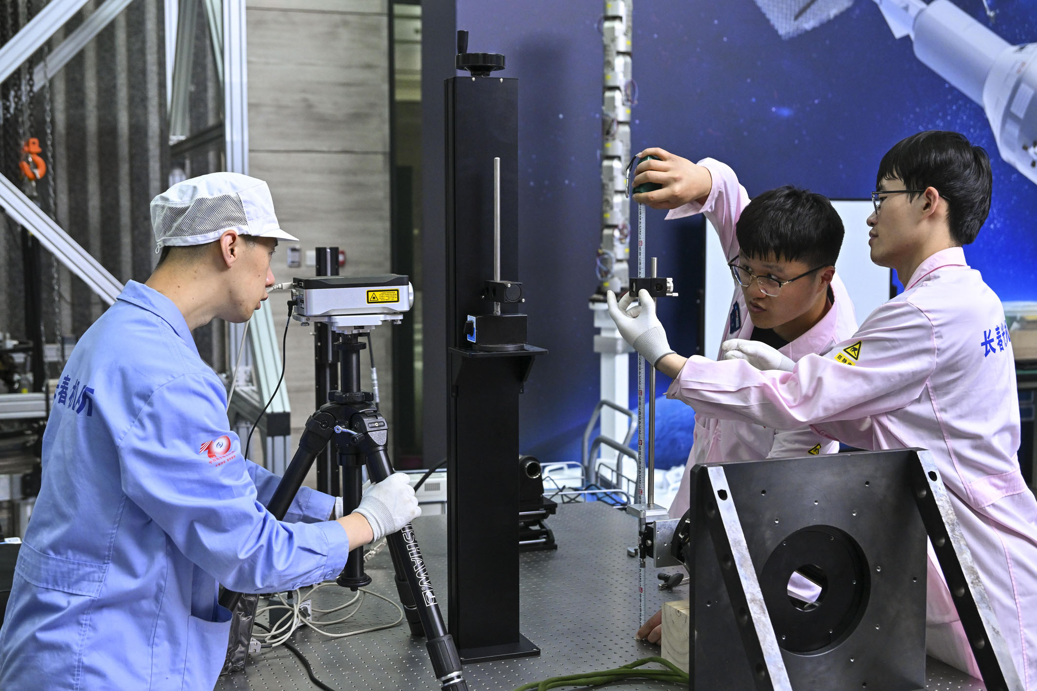 圖為中國科學(xué)院空間光學(xué)系統(tǒng)在軌制造與集成重點(diǎn)實(shí)驗室科研人員進(jìn)行實(shí)驗調(diào)試。 新華社記者 許暢 攝