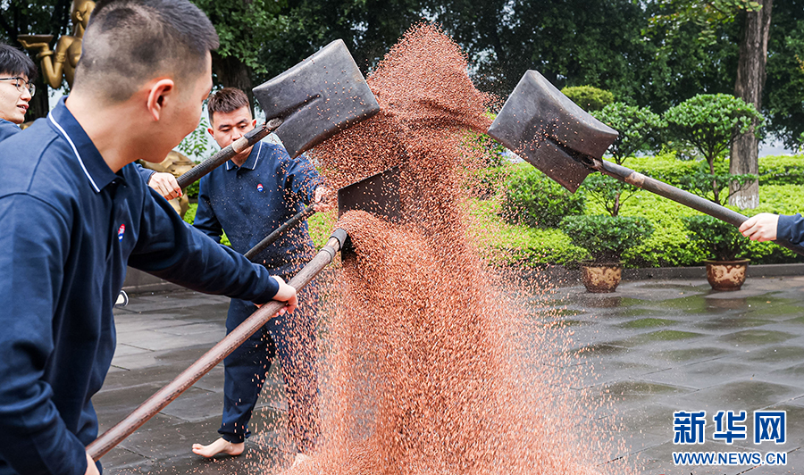 10月11日,參加茅臺酒節(jié)的嘉賓在茅臺中國酒文化城體驗“下沙”工藝。新華網(wǎng) 盧志佳 攝
