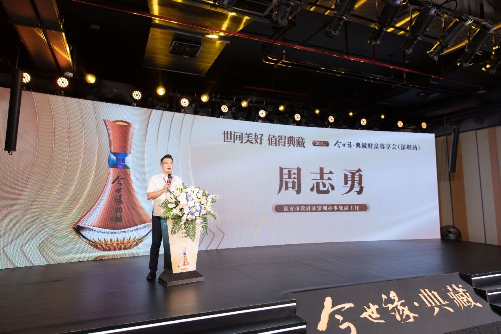 淮安市政府駐深圳辦事處副主任周志勇發(fā)表致辭。他說,江蘇淮安文化底蘊(yùn)深厚,而今世緣酒業(yè)作為淮安的杰出代表,此次在深圳舉辦今世緣·典藏財(cái)富尊享會(huì)(深圳站),不僅體現(xiàn)了對(duì)深圳市場的重視,也彰顯了淮安與深圳之間日益密切的交流與合作。