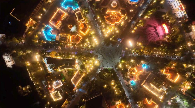 夜幕下的六星街像是一杯美酒,熱烈而濃郁,高低不同的建筑,在燈光的照耀下錯(cuò)落有致,整座街區(qū)沐浴在五彩斑斕的霓虹燈下,更加浪漫。